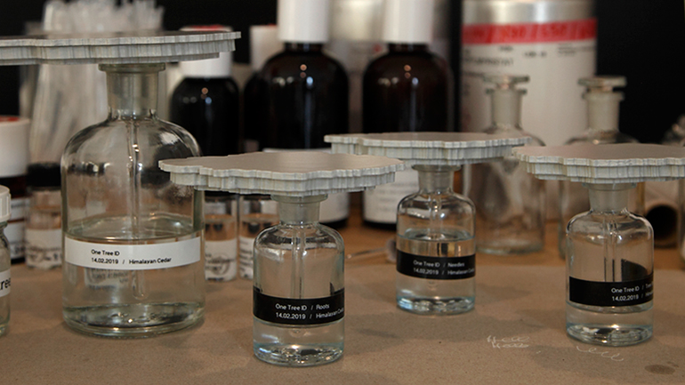 The project One Tree ID transforms the VOC * identity of a specific tree into a perfume that can then be applied to the human body.