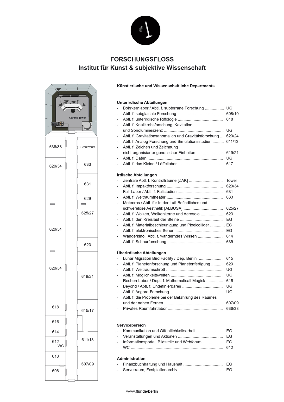 Das FORSCHUNGSFLOSS ist eine sich ständig transformierende Meta-Installation in Form eines "Institutes für Kunst und subjektive Wissenschaft".