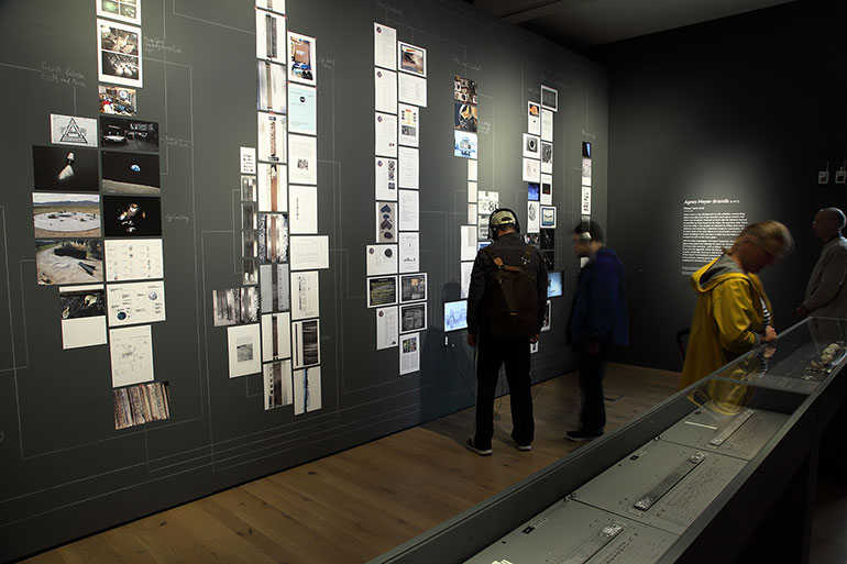 Fig. left: installation view, York Art Gallery, UK, 2018 , Fig. right: installation detail with moon core simulant display |