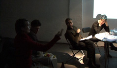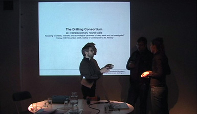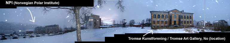 From left to right: Svein Pedersen, director Tromsø kunstforening & talkmaster next to Agnes Meyer-Brandis, location Tromsø Art Gallery, Svein P. talking with Torgeir Bjelvin from oil company Discover |